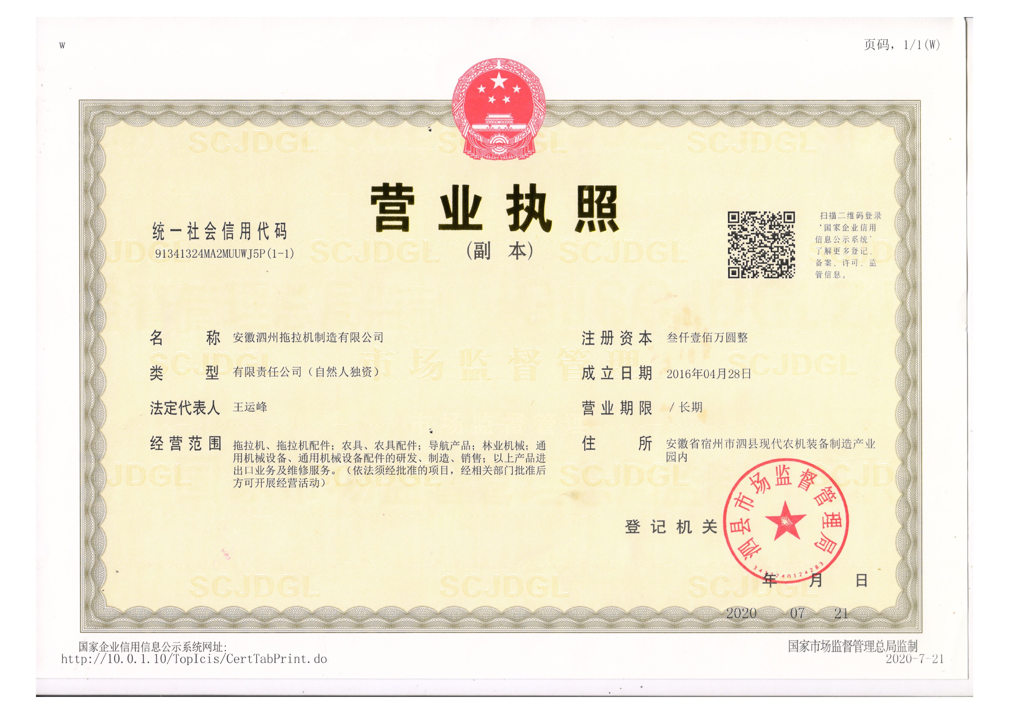 安徽泗州拖拉机制造有限公司成立于2016年4月,是一家新兴的专业生产中大马力轮式拖拉机、SZBD系列北斗农机自动驾驶仪、HT系列北斗导航自动驾驶拖拉机及植保机、打捆机等多种农机具的技术型农业装备企...
